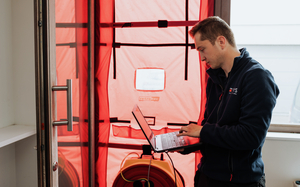 Onze experts plaatsen tijdens de test een ventilator in een raam of deuropening. Vervolgens wordt het gebouw afwisselend in onderdruk en overdruk gebracht. Het drukverschil tussen binnen en buiten zorgen ervoor dat luchtlekken visueel op te sporen zijn, dit wordt gedaan met rookstiften of thermografische camera’s.